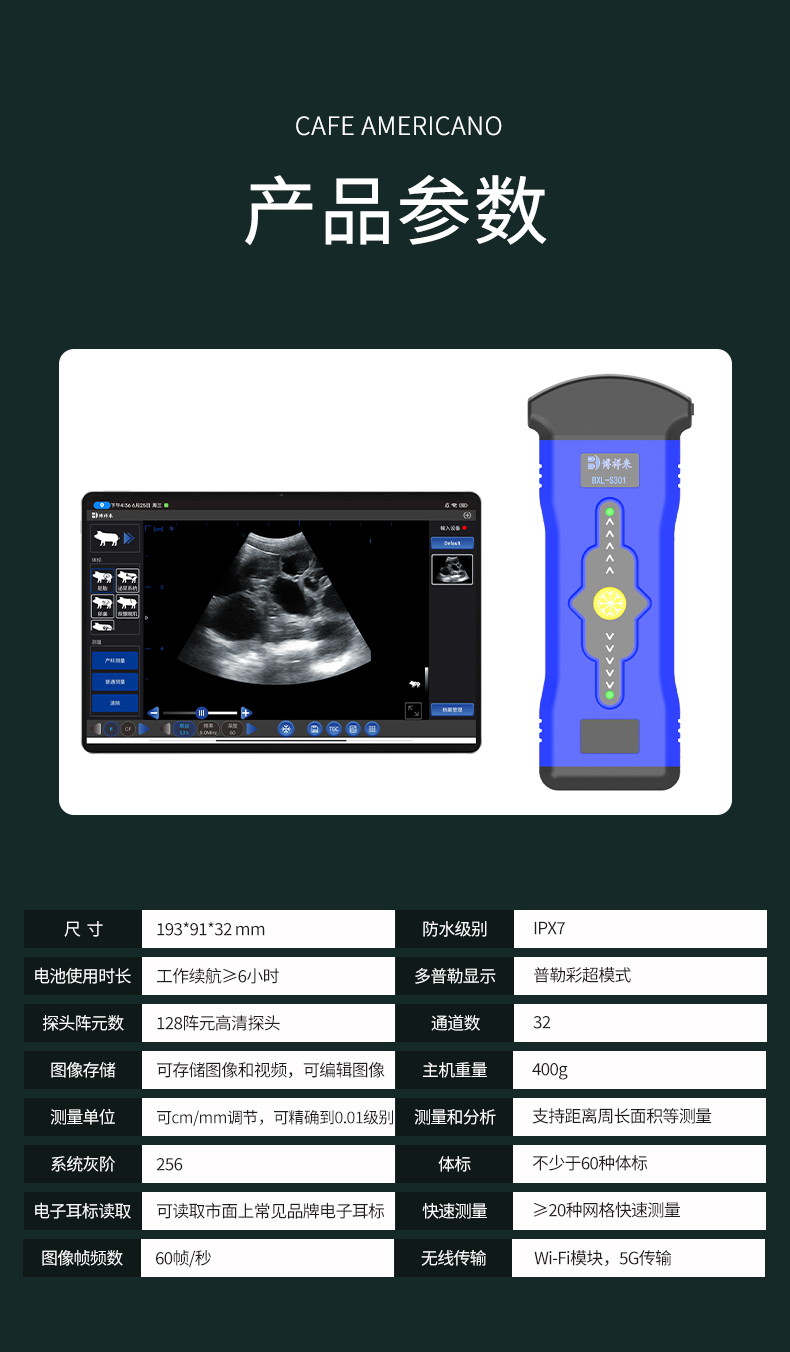 1.2、全数字化无线小蛮腰动物专用多普勒彩超系统,适用牛、羊、马、猪、驴、骆驼、小动物、野生动物等动物扫查